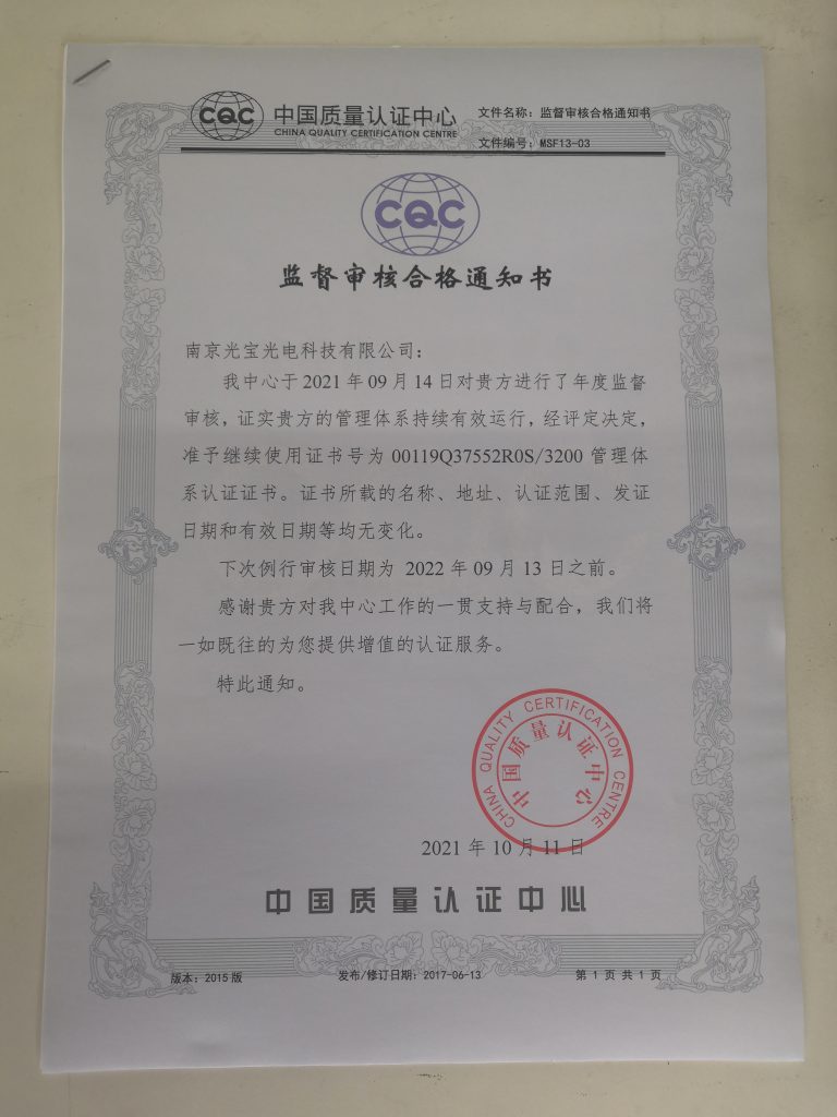 2014年9月 南京光寶光電科技有限公司注冊成立,入住南京先進激光研究院